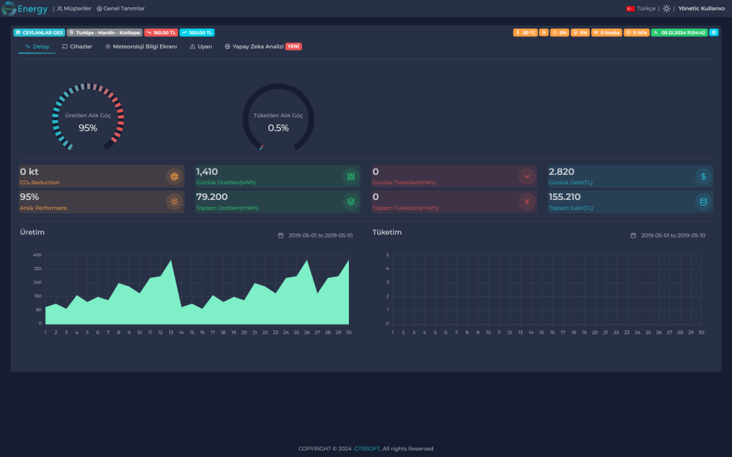 – Tesis verimi ve invertörlerin verim karşılaştırması, invertörler arasında belirlenen bir oranın üzerinde performans farkı varsa bunu bir hata mesajıyla bildirilmesi